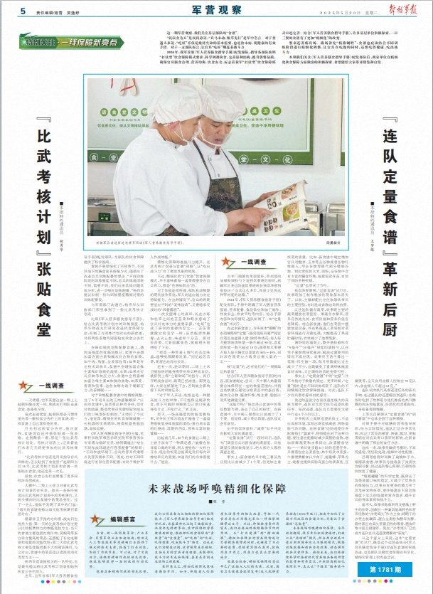 精细化保障助推战斗力提升。比武考核计划表与食谱“同框”,让“吃出战斗力”有了更加具象的体现。