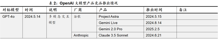 在新模型进展发布方面,OpenAI推出了新一代的推理模型。4月17日,OpenAI正式发布了o3和o4-mini。o3刷新了OpenAI推理模型能力,新模型首次将图像深度分析融入思维链,并在性能、速度与价格上全面超越前代产品,在推理性能上刷新行业记录。4月4日,OpenAI表示将在未来几个月将发布GPT-5。5月17日,OpenAI推出了基于云端的AI智能体Codex,专注于自动化软件的开发,加快了在AI应用的落地。