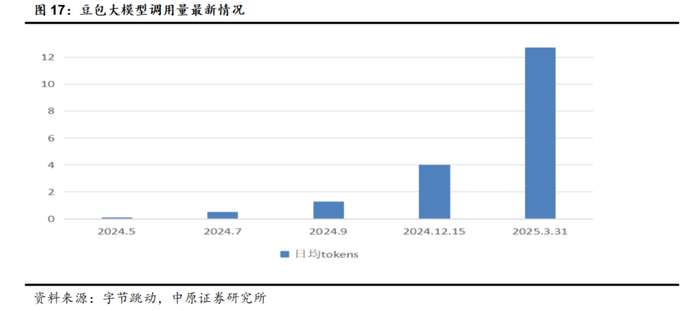 (2)AI:根据太平洋网新闻,DeepSeek计划于5月发布下一代AI模型DeepSeek-R2。R2总参数达到1.2万亿,基于华为昇腾910B进行训练。OpenAI受到DeepSeek的压力,重新开启了开源的布局,同时积极推进向公益公司(PBC)的转型计划。2025年AI应用全面加速,截止 2025 年 3 月底,豆包大模型日均 tokens 调用量已达到 12.7 万亿,是2024年12月15日4万亿的3.18倍。