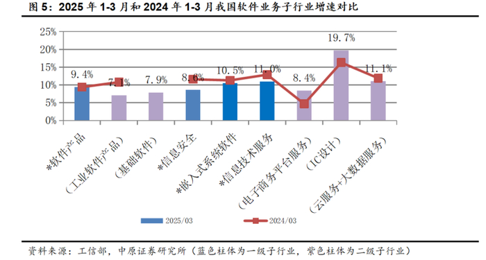 基础软件:2025年1-3月同比增长7.9%,不及软件行业整体增速。