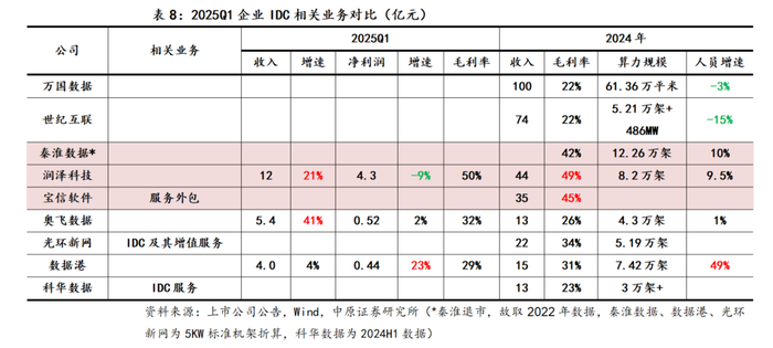 2025Q1来看,3家IDC企业中,润泽科技和奥飞数据都保持了较好的增长,数据港净利率增速回升明显。