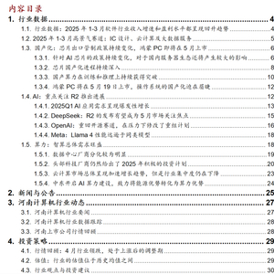 给予行业强于大市的投资评级。当前美国调整了在AI领域对我们出口管制的策略,废除了拜登时期进行全球AI算力芯片封锁的思路,转而积极支持中东建设数据中心,并限制中国AI模型的生态建设和推广应用。从Q1阿里和腾讯的财报来看,资本开支环比下滑明显,加剧了市场担忧。但是我们已经明显看到了AI业务对于云计算厂商业务的促进,AI应用和Agent也在加速落地的过程中。随着国产硬件能力的持续提升,国产厂商在AI产业的发展也有望持续的改善。建议积极关注R2、鸿蒙电脑发布的相关进程。