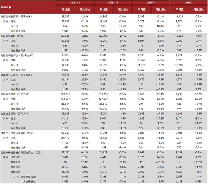 国家统计局公布2025年1-4月房地产开发投资与销售数字。