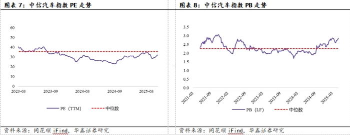 截至2025年5月16日,汽车行业PE(TTM)为32.0,位于近4年以来33.0%分位;汽车行业PB为2.9,位于近4年以来92.1%分位。