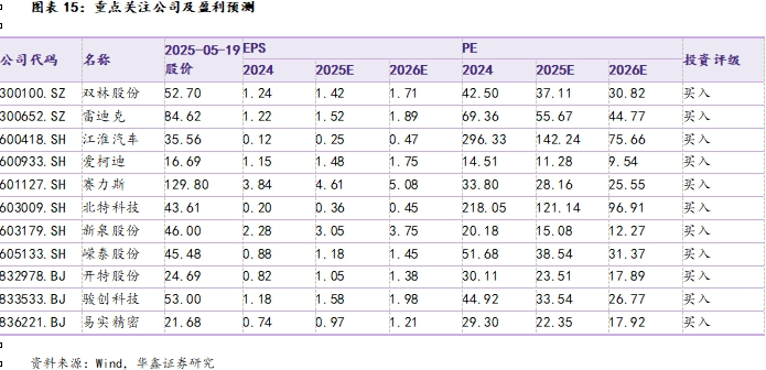 投资建议:在“以旧换新”政策与智能化新技术等带动下,汽车销量持续快速增长。补贴政策与近日上海车展展示的多款新车型促进了供需的双向提升,后续交付或继续放量。随着行业自有品牌影响力提升和产业链重构,国产零部件厂商产业链地位有望得到明显改善。此外,智驾渗透率的提升与机器人等新领域或助推汽车产业链发展。