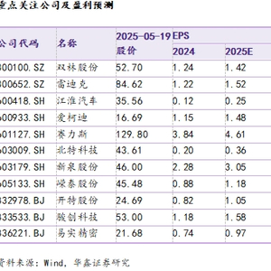 在我们重点跟踪的公司中,兆丰股份(34.8%)、新坐标(26.2%)、神驰机电(19.6%)等涨幅居前,苏奥传感(-9.0%)、金鸿顺(-7.6%)、华达科技(-5.3%)等位居跌幅榜前列。