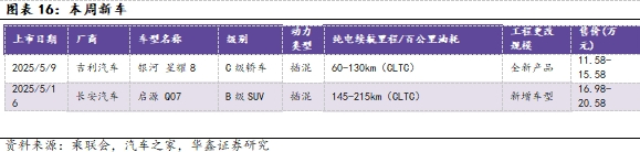 其中,乘用车涨3.9%, 商用车跌0.7%,汽车零部件涨2.8%,汽车销售及服务涨1.2%,摩托车及其他涨0.6%。概念板块中,新能源车指数涨1.9%,智能汽车指数涨0.4%,人形机器人指数涨7.3%。近一年以来(截至2025年5月16日),沪深300涨7.3%,汽车、新能源车、智能汽车涨跌幅分别为32.8%、11.7%、24.6%,相对大盘的收益率分别为+25.5pct、+4.4pct、+17.3pct。