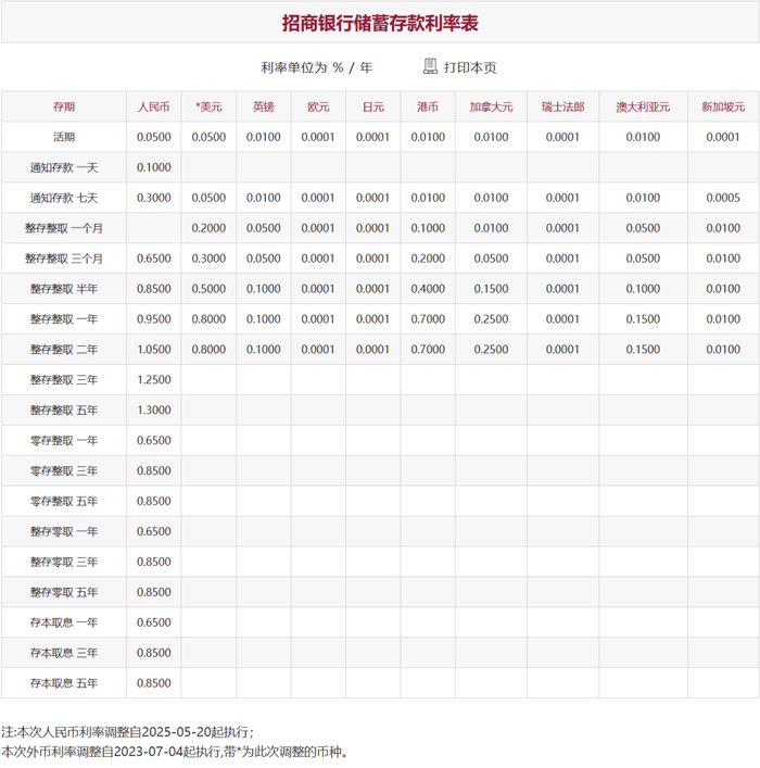 头部股份行同步跟进,目前招商银行官网储蓄存款利率表已完成更新。