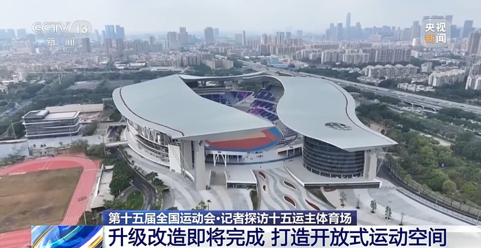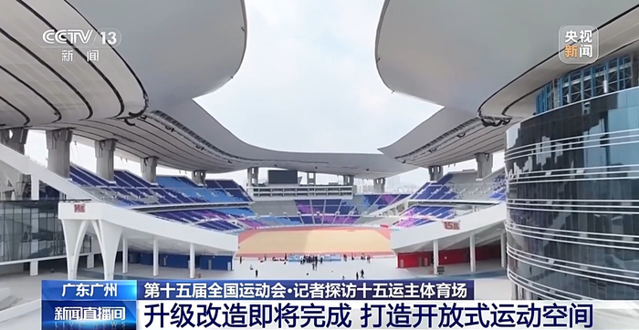 总台央视记者 杨威:作为第十五届全国运动会的主体育场,广东奥体中心体育场的改造工作目前已经接近了尾声。这次改造工作最大的一个亮点就是实现了体育场馆空间的开放化。从我现在所处的这个坡道走上来之后,就可以很容易直面宏伟的广东奥体中心。而这也恰恰体现了大湾区务实开放包容创新的精神特质。