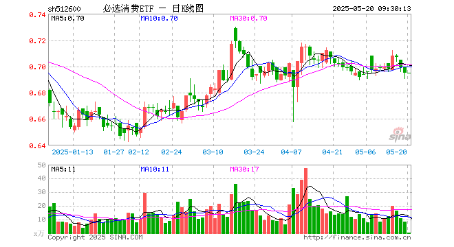 必选消费ETF(512600)开盘涨0.00%,重仓股贵州茅台涨0.06%,伊利股份涨0.10%