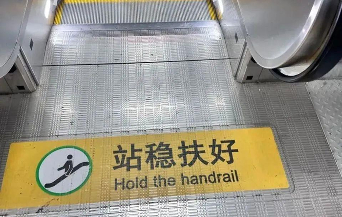 目前,这一标识并非所有北京地铁扶梯都有,但地铁站都会在扶梯口明确显示“站稳扶好”字样,并在墙上显眼位置张贴乘坐扶梯的提示。