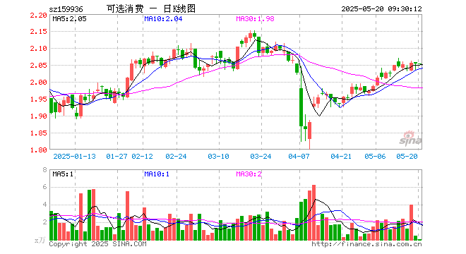 可选消费ETF(159936)开盘涨0.00%,重仓股美的集团跌0.06%,比亚迪涨0.18%