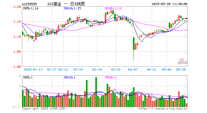 5月20日,截止午间收盘,中证A50ETF基金(159595)涨0.69%,报1.161元,成交额7054.09万元。中证A50ETF基金(159595)重仓股方面,贵州茅台截止午盘涨0.51%,宁德时代涨1.52%,中国平安涨1.07%,招商银行涨0.46%,美的集团涨1.70%,长江电力涨1.08%,比亚迪涨2.52%,紫金矿业涨0.75%,中信证券涨0.23%,恒瑞医药涨2.28%。