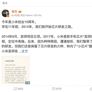 也不难理解,芯片之于手机的重要性早已不言而喻,雷军在发文中就说到:「小米一直有颗『芯片梦』,因为,要想成为一家伟大的硬核科技公司,芯片是必须攀登的高峰,也是绕不过去的一场硬仗。」