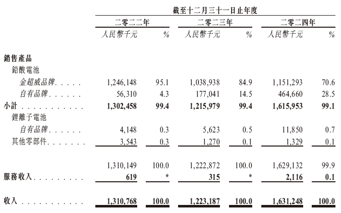 于往绩记录期间,快驴科技的收入主要来源于销售的铅酸蓄电池、锂离子电池,也从销售零部件及服务收入产生收入。公司以「金超威」品牌及一个自有品牌销售。