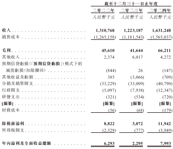 招股书显示,在过去的2022年、2023年和2024年,快驴科技的营业收入分别为人民币13.11亿、12.23亿和16.31亿元,相应的净利润分别为人民币0.63亿、0.23亿和0.80亿元。