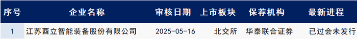 本期(5.12~5.16)有1家上会企业,最新进程为已过会未发行。