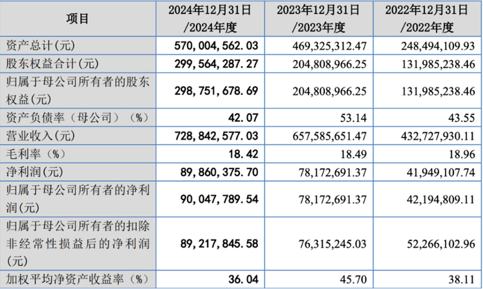 江苏酉立智能装备股份有限公司,是经江苏省科学技术厅、江苏省财政厅、国家税务总局江苏省税务局联合认定的高新技术企业。聚焦光伏支架核心零部件的研发、生产和销售,主营产品包括光伏支架主体支撑扭矩管(TTU)、光伏支架轴承组件(BHA)等产品。光伏支架在光伏发电系统中起到支撑光伏发电组件的作用,其稳定性与否是决定光伏电站寿命长短的关键因素。主要财务数据如下: