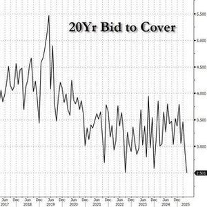 日本财务省周二进行的1万亿日元(约69亿美元)20年期国债拍卖录得灾难性结果。投标倍数仅为2.5倍,远低于上月的2.96倍,创下自2012年以来的最低水平。
