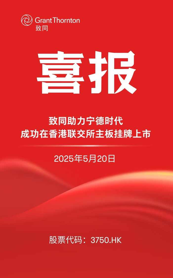 作为宁德时代的长期合作伙伴,致同凭借对“A+H”双市场规则的深刻理解及跨境协同能力,全程参与这一里程碑项目,以专业服务贯通境内外资本市场,助力企业加速国际化布局。