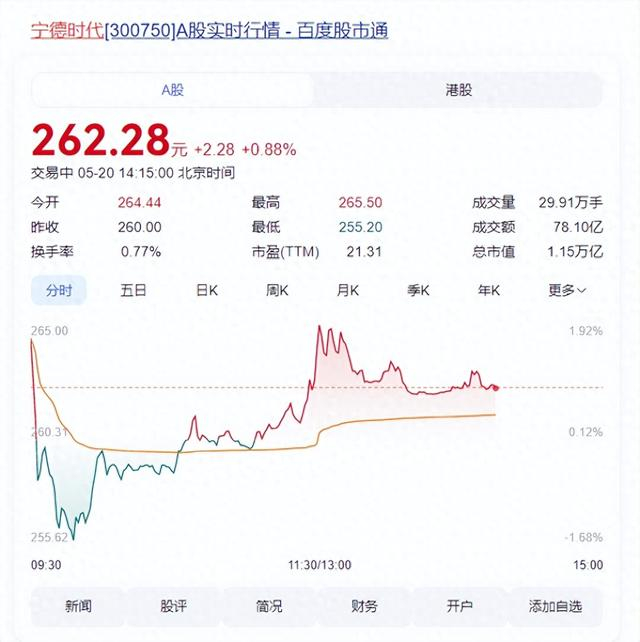 【环球网财经综合报道】5月20日9点半,宁德时代(300750.SZ/03750.HK)董事长曾毓群身着黑西装、戴蓝领带敲响港股上市铜锣。公司当日正式在港交所挂牌,成为国内首家同时在A股(2018年深交所创业板上市)和H股上市的动力电池企业。