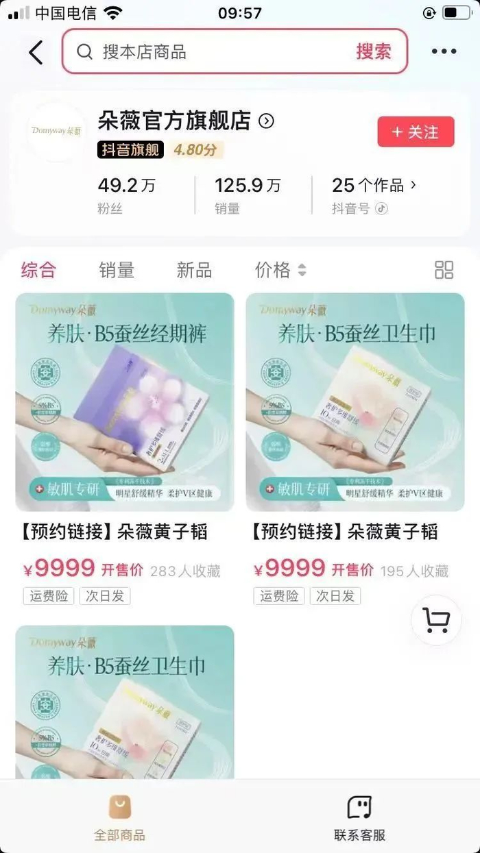 尽管受到质疑,但当朵薇卫生巾于当日19时正式开卖时,销量依然“爆了”。