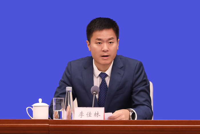 团省委副书记李佳林在政策吹风会上介绍相关情况。苏鹤 摄