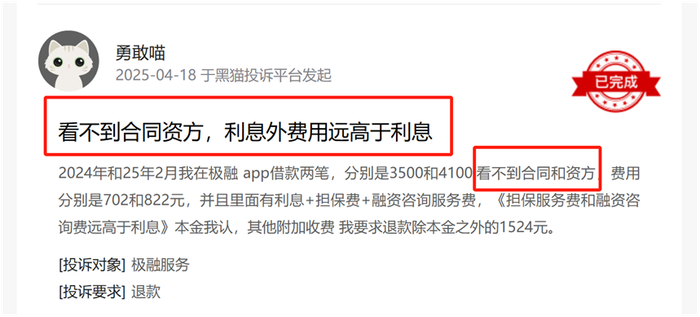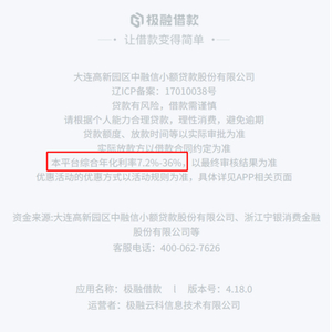 关于借款利率,不管是你我贷借款,还是极融借款,综合年化借款利率均为7.2%-36%。也就是说,在嘉银科技旗下平台申请借款,最高借款利率为36%。针对黑猫聚投诉上客户反馈利率过高,客服均回复:“平台是合法合规经营,利率均在法律法规允许及协议约定的范围内,退费诉求无法满足。”
