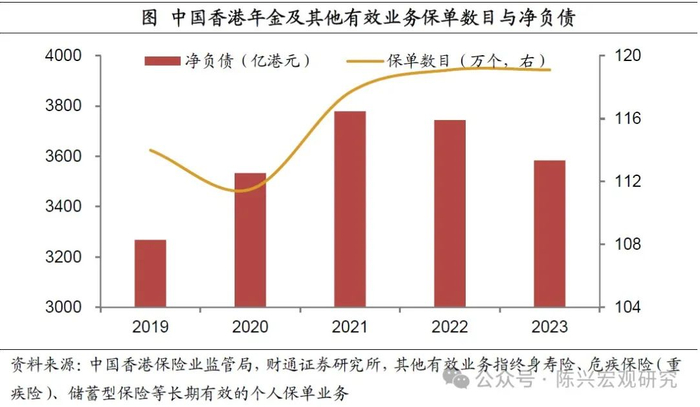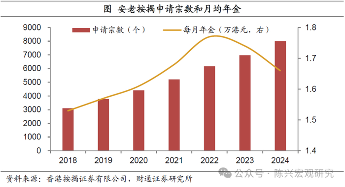 香港年金计划是政府主导型公共年金产品。香港年金计划是由香港按揭证券有限公司全资子公司——香港年金有限公司运营的政府主导型公共年金产品,旨在为60岁及以上中国香港永久居民提供终身稳定的现金流保障。该计划要求投保人一次性缴付最低5万港元保费,即可终身每月领取固定年金,其核心特点是无投资风险、终身支付、资金锁定性强。截至2023年底,中国香港年金及其他有效业务净负债规模达3585亿元,保单数目超119万个。