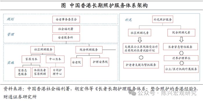 长者照护和住房保障有何特色?长期第三支柱养老金已经包含较多特色的养老金融产品,而在养老体系建设上,中国香港的长期照护和以房养老体系建立相对完善。一方面,中国香港长期照护服务由政府部门主导、部分合格私营企业参与,提供由轻度的居家照护、社区日间照护中心到重度的院舍护理的长期照护服务;另一方面,中国香港已建成全面的长者住房保障体系,包括优先编配公屋计划、长者特别住屋和补充服务等。