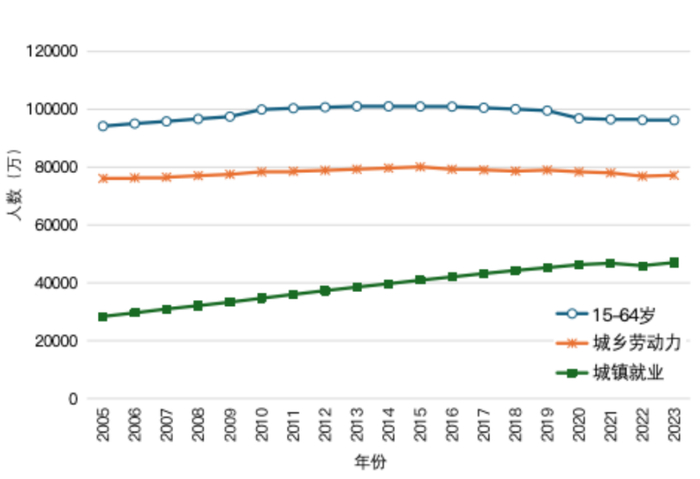 还有一点需要关注,就是从长期趋势来看,中国长期以来的劳动力丰富、就业不充分的总量矛盾也得到缓解。在过去十余年里,劳动年龄人口、城乡劳动力、城镇就业等不同口径的劳动力资源,都已经进入或即将进入负增长阶段,意味着总量性就业矛盾转变为结构性就业矛盾,是一个发展阶段现象,在趋势上不可逆转。