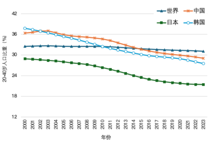 在世界工业机器人市场中,中国排在第一,日本第二,韩国第四,都有极为突出的人口老龄化背景。这三个国家的老龄化程度也最高,中间段的劳动年龄人口减少最快。中国的劳动年龄人口减少已经十多年,总人口减少也有两年了,进入了中度老龄化阶段。同时我们还有一个更大的特点,叫做“未富先老”。日本是世界上人口最老的国家之一、老龄化速度最快的国家之一,也是老的时间最长的国家之一。日本长期缺乏劳动力,只能不断增加机器人的使用。韩国的老龄化程度后来居上,其总和生育率(平均每对夫妇生育的子女数)只有不到0.8,是世界上最低的。