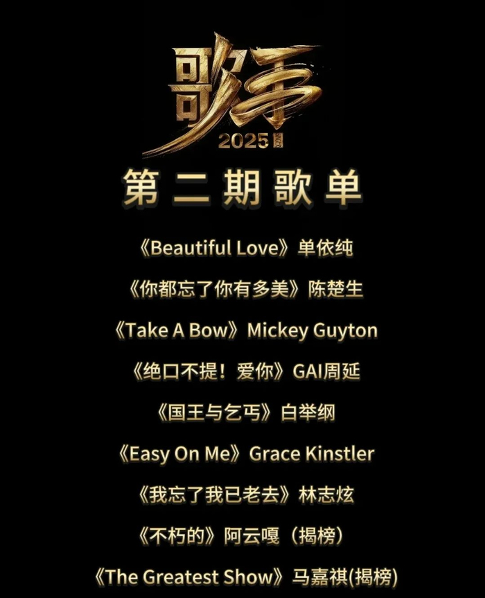 《歌手2025》第二期歌单曝光,单依纯或唱蔡健雅《Beautiful Love》