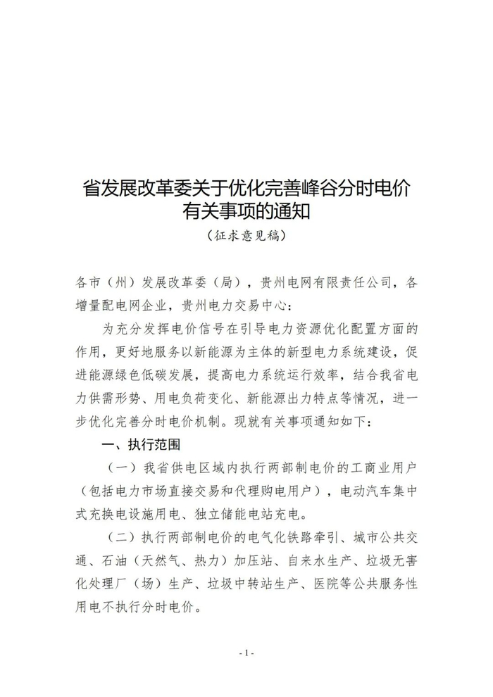关于公开征求《省发展改革委关于优化完善峰谷分时电价有关事项的通知》意见的公告
