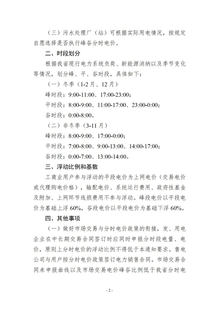 文件指出,根据电力系统负荷、新能源消纳以及季节变化等情况,3—11月中午的13:00—14:00为谷电时段。