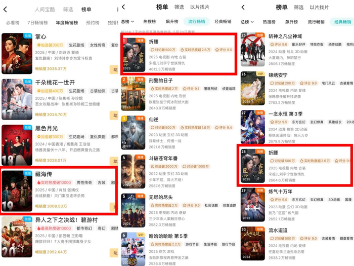 这也是《藏海传》对打《折腰》会引发行业高度关注的另一大核心动因。