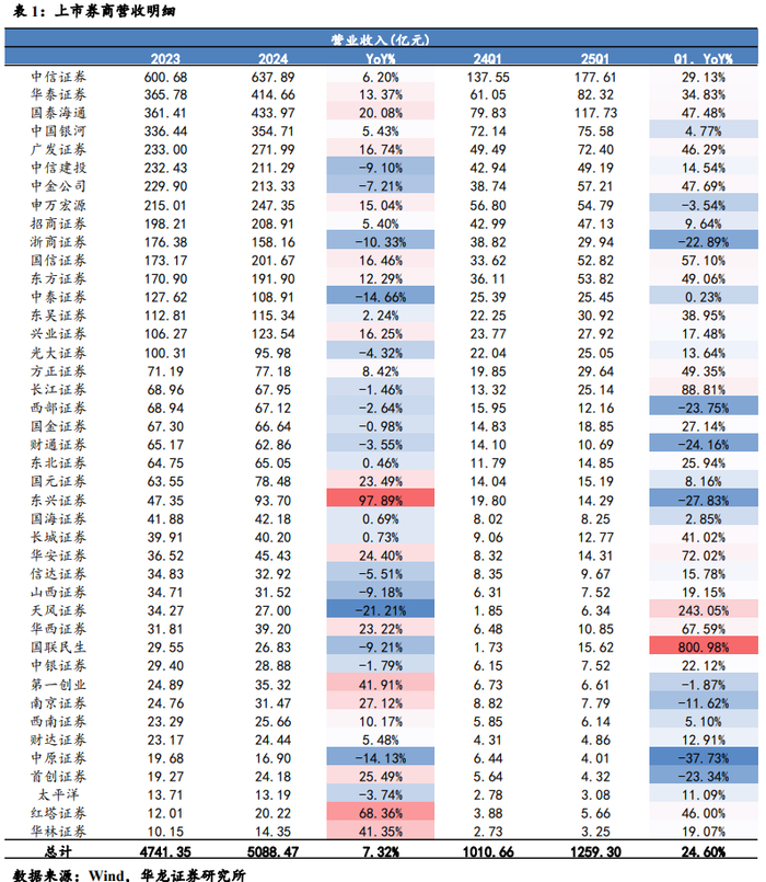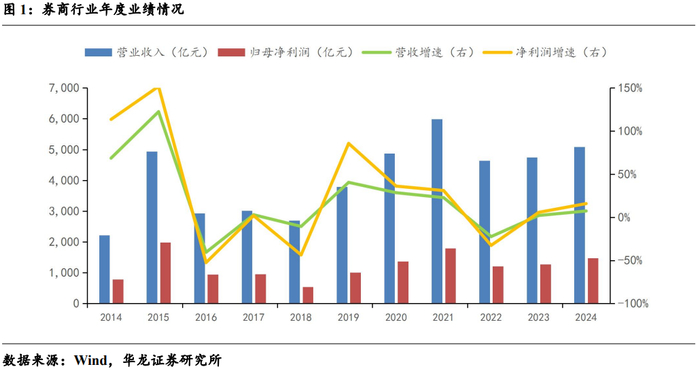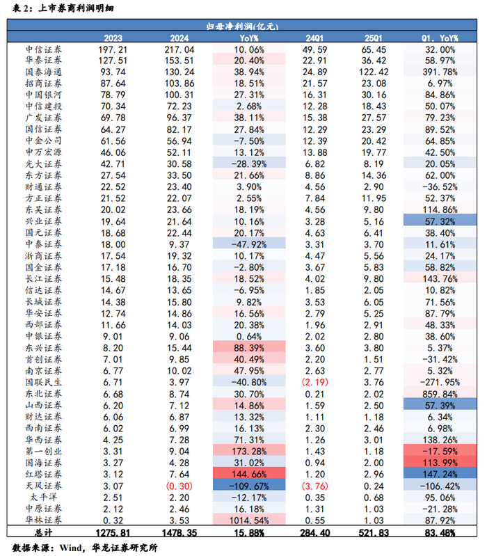 【华龙非银】上市券商2024 年及2025 年一季度业绩综述:长期资金入市支撑市场 券商业绩有望保持稳定