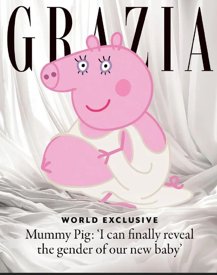 值得一提的是,猪妈妈还以孕照登上英国《Grazia》时尚杂志封面。