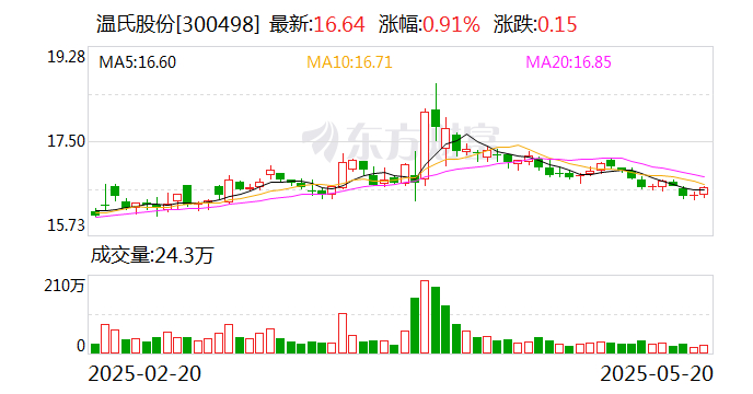 2025年一季度,温氏股份延续良好发展态势,实现营业总收入243.31亿元,同比增长11.37%;实现净利润20.74亿元,同比增长265.06%。
