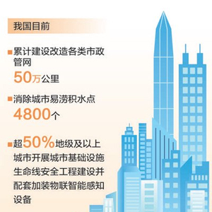 城市不仅更加宜居,还将更具韧性、更为智慧。“十四五”以来,我国系统化实施城市基础设施更新改造。目前已累计建设改造各类市政管网50万公里,消除城市易涝积水点4800个,同时有超50%的地级及以上城市开展城市基础设施生命线安全工程建设,配套加装物联智能感知设备。秦海翔介绍,下一步将继续抓好“里子”工程,推进城市燃气、供水、污水、排水、供热等地下管网升级改造,因地制宜建设地下综合管廊。持续提升城市安全韧性,加快推进城市生命线安全工程建设,对城市市政设施进行实时监测、动态预警、有效处置,切实消除安全隐患。