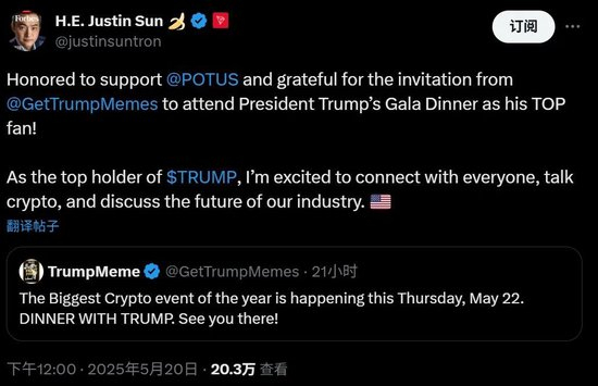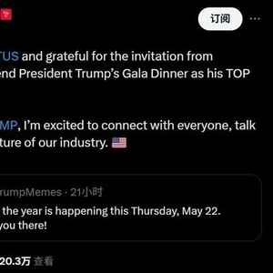 作为背景,“特朗普币”官方网站4月时宣布,将在5月22日邀请持币量最多的220人参与特朗普晚宴,同时持有量前25名还能获得参观白宫的机会。