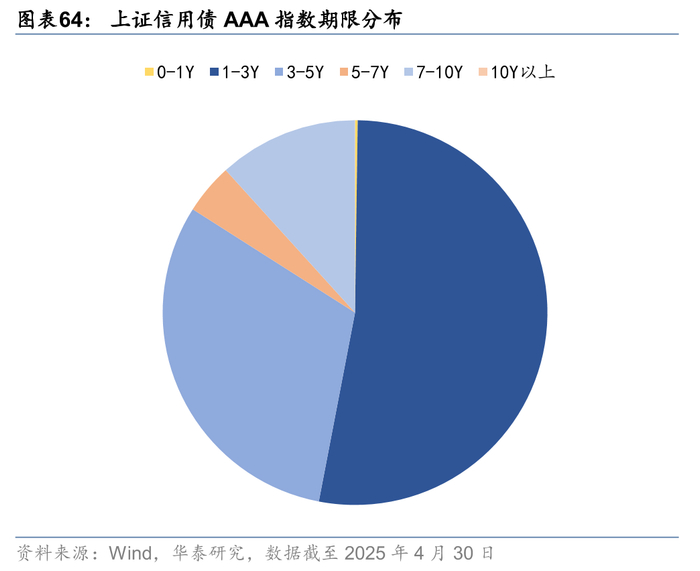 期限方面,基准公司债指数成分债以1-5年为主,久期较普信债指数更长。截至2025年4月30日,上证基准公司债指数加权平均久期约4.1年。其中,3-5Y成分券占比约42%,位次第一;1-3Y次之,占比近32%;7-10Y、10Y以上占比也不低,合计近20%。深证基准做市信用债期限结构亦呈类似特征。相比之下,AAA普信债指数以短债为主,1-3Y期限成分券占比约53%,3-5Y占约31%,7-10Y、10Y以上成分券合计占约12%,整体久期更短,加权平均久期约3.87年。
