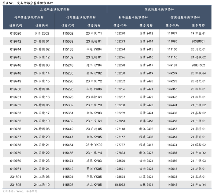 第二,相比普通信用债ETF,基准做市信用债ETF的成分券评级更高、信用风险更低,中长债比例更高。以上交所为例,其对基准做市品种的要求包括:1)1年期、2年期、3年期、5年期、10年期的国债中分别选取最新上市的两期国债,以及上交所指定开展做市的其他政府债券、政策性金融债品种;2)发行规模在30亿元以上、债项评级为AAA级的公司债券;3)发行规模在20亿以上、主体评级为AAA级的科技创新公司债券、绿色公司债券和民营企业发行的公司债等;4)上交所认可的其他品种。深交所的规定也大体一致,基准做市信用债清单以AAA级公司债、企业债为主,主要区别是发行规模方面深交所要求是15亿元以上。
