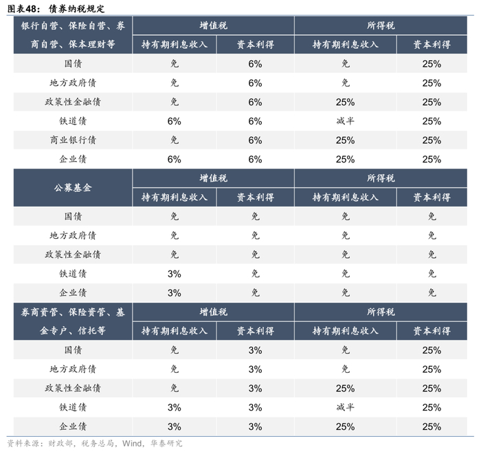 债券ETF此类公募基金相比于非公募,在税收上有一定优势。投资者从基金分红中取得的收入,暂不征收企业所得税。对于银行自营、保险自营、券商自营、保本理财等机构,投资国债所获得的资本利得需征收25%的企业所得税和6%的增值税,这些都可通过基金分红获得减免。