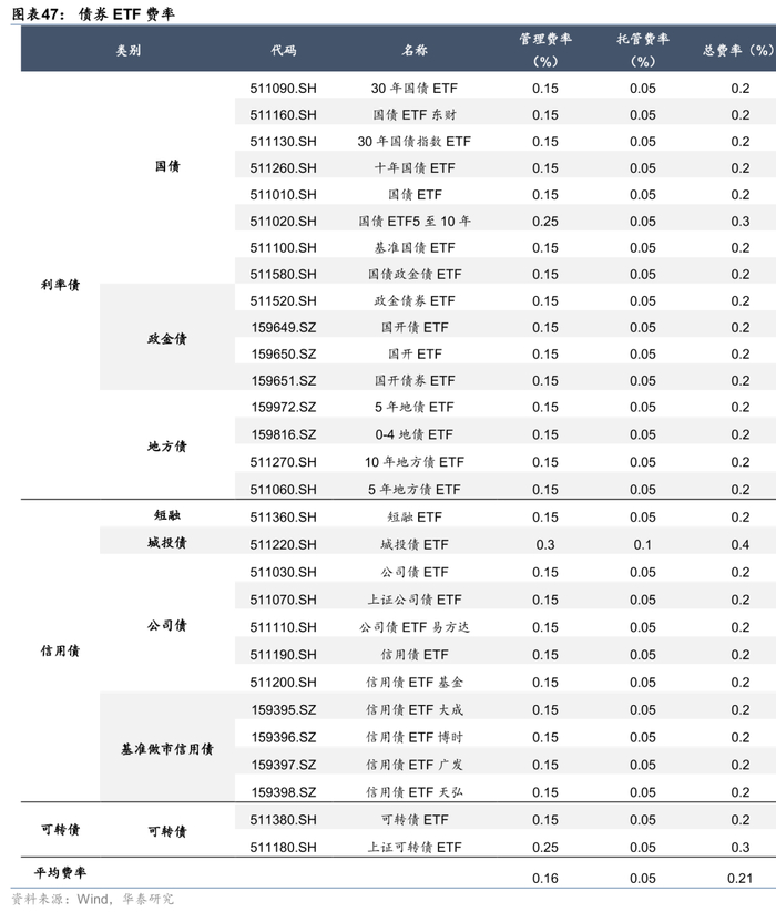 相较于普通债券型基金而言,债券ETF管理费、托管费率通常更低,无申赎费用,交易成本较低。被动投资相比主动投资,管理人需要做的主观决策少,更依赖成熟的系统和执行环节,对明星基金经理的依赖度低,投资者相应为管理人的主观决策能力进行付费较少。此外,由于债券指数基金随着管理规模的上升,需要投入的资源并不会成比例增加,即有经济学意义上的规模经济,进一步拓展了费率下降的空间。