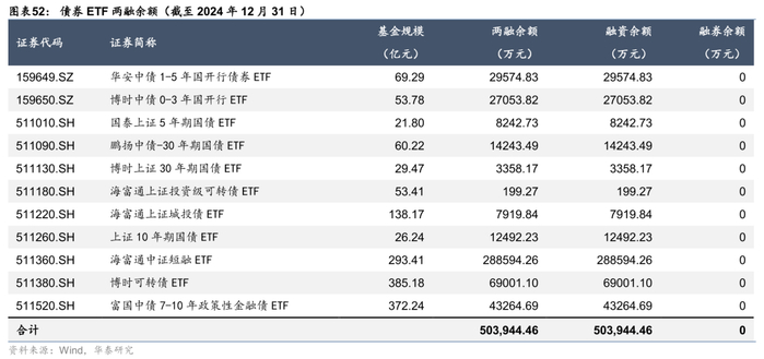 一些债券ETF还可冲抵保证金,用于融资融券操作,模式与个股相同,区别在于质押物由个股变为ETF基金。相比个股融资融券,ETF融资融券具备折算率更高、分散化程度高、成本低等优势。根据上交所和深交所1月12日发布的《关于融资融券标的证券2023年第四季度定期调整有关事项的通知》,目前已有11只债券ETF进入融资融券标的。