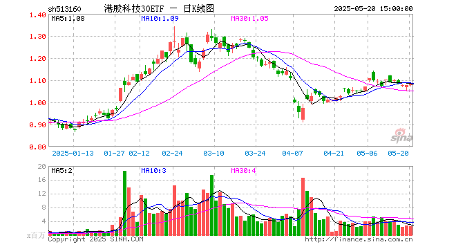 5月20日港股科技30ETF(513160)份额减少1100.00万份,最新份额10.76亿份,最新规模11.70亿元