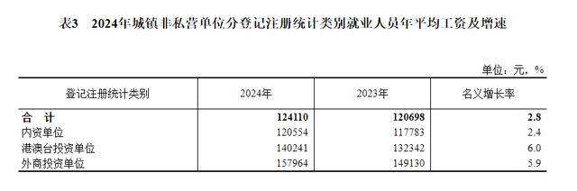 2024年,全国城镇非私营单位就业人员年平均工资124110元