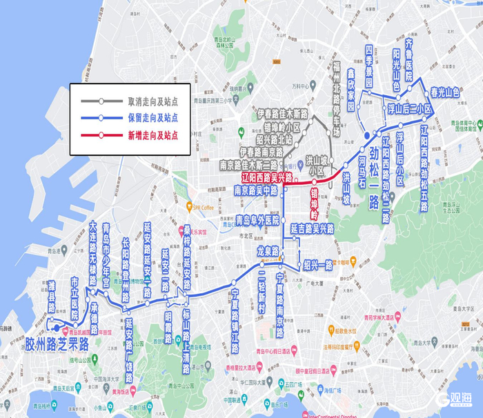 取消站:青岛大学高雄路(仅下行)、高雄路(双向)、青岛大学(仅上行)。