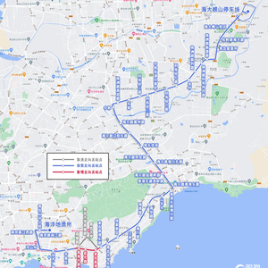 增设站:麦岛路停车场(双向并37路)、锦园小区(双向并37路)、麦岛香港东路(双向并37路)。